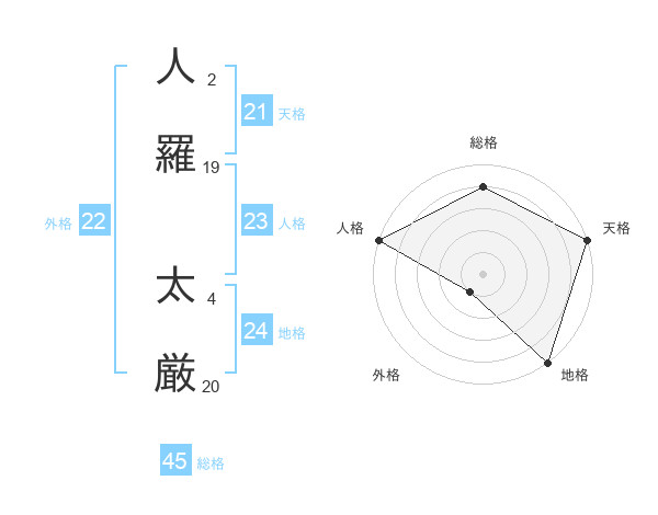 人羅 太厳さんの総格は45画の4点!