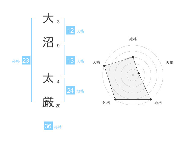 大沼 太厳さんを姓名の画数から五運を鑑定