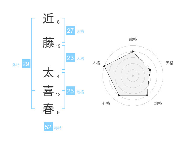 近藤 太喜春さんを姓名の画数から五運を鑑定
