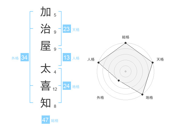 加治屋 太喜知さんを姓名の画数から五運を鑑定