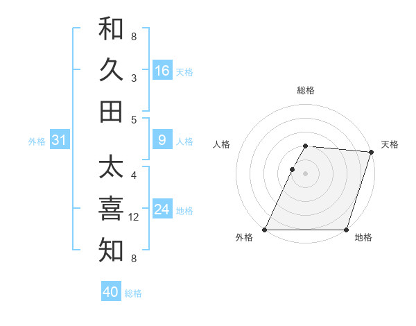 和久田 太喜知さんを姓名の画数から五運を鑑定