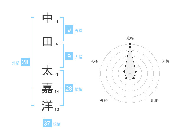 中田 太嘉洋さんを姓名の画数から五運を鑑定