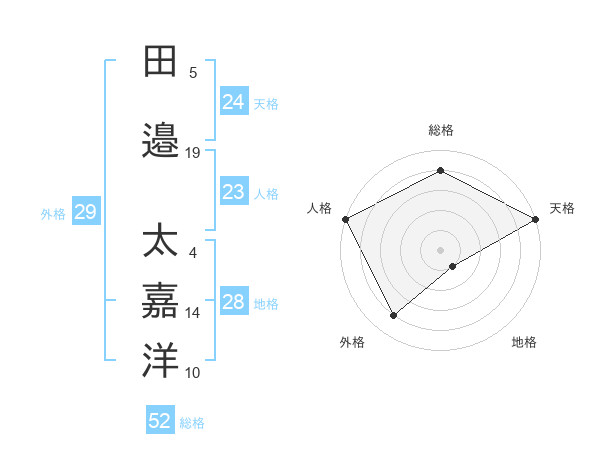 田邉 太嘉洋さんを姓名の画数から五運を鑑定