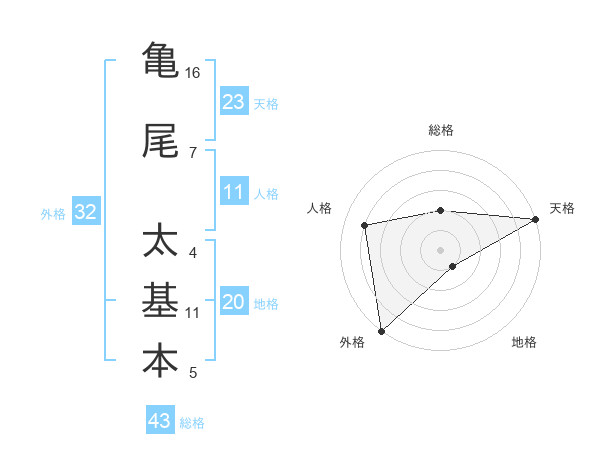 亀尾 太基本さんの天格は23画の5点!