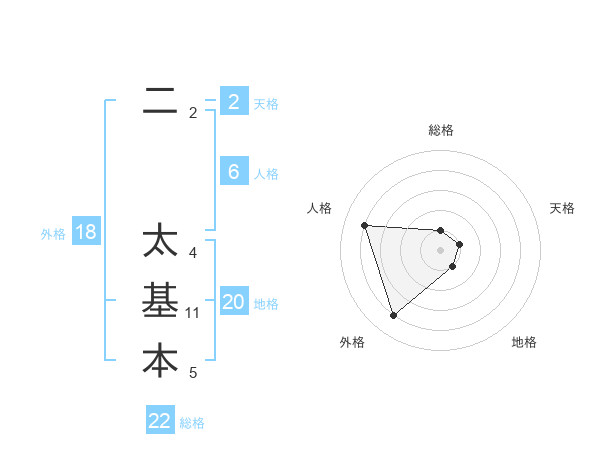 二 太基本さんの総格は22画の1点!