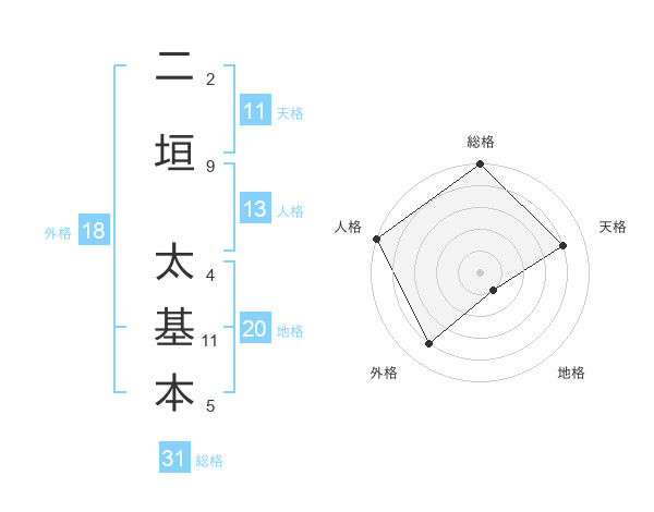 二垣 太基本さんを姓名の画数から五運を鑑定