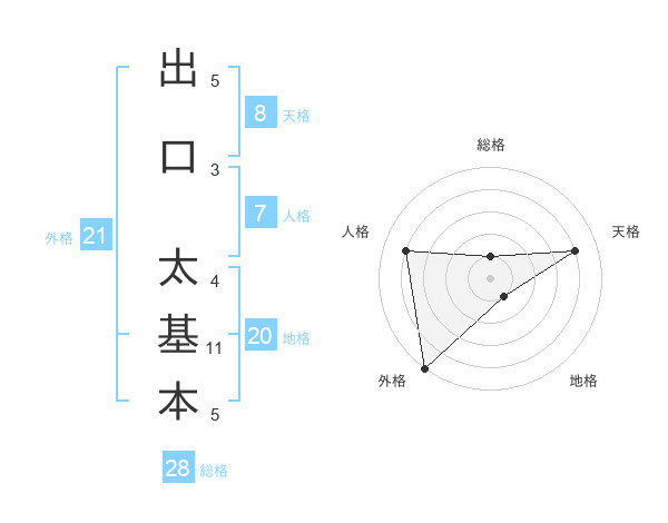 出口 太基本さんの総格は28画の1点!