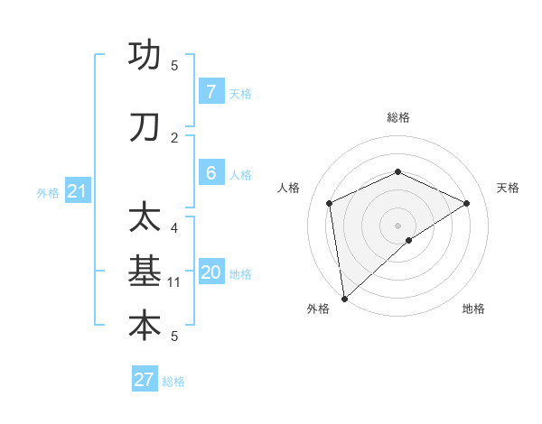 功刀 太基本さんの天格は7画の4点!