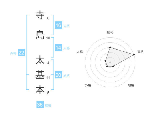 寺島 太基本さんを姓名の画数から五運を鑑定