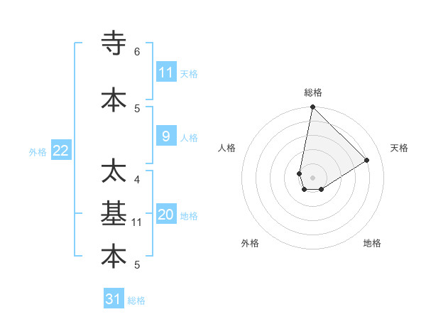 寺本 太基本さんを姓名の画数から五運を鑑定