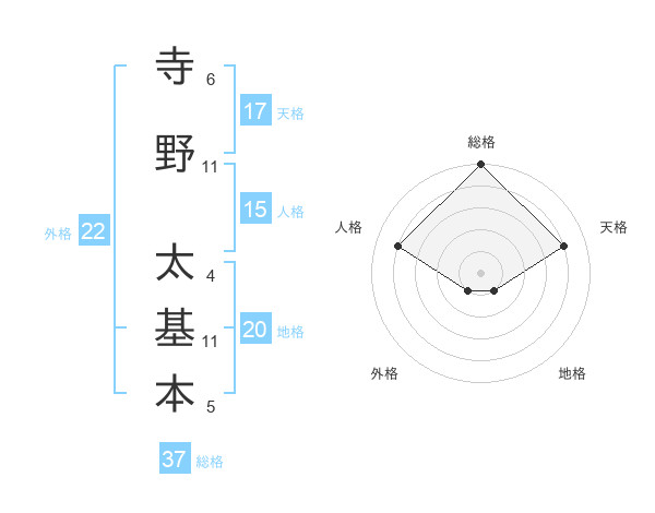 寺野 太基本さんを姓名の画数から五運を鑑定