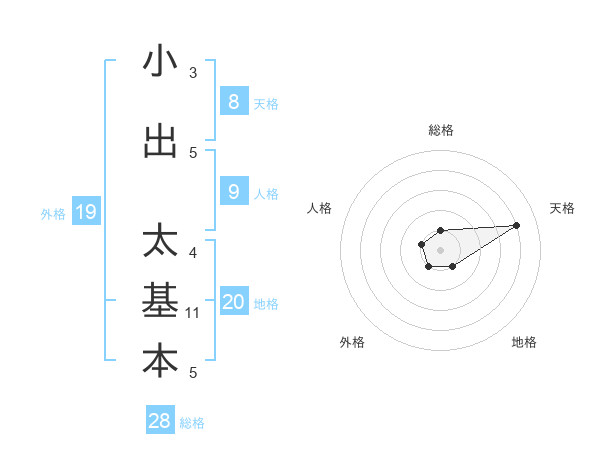 小出 太基本さんの天格は8画の4点!