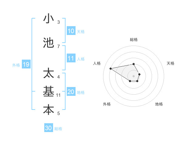 小池 太基本さんの天格は10画の1点!