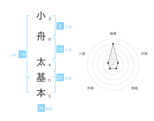 小舟 太基本さんを姓名の画数から五運を鑑定