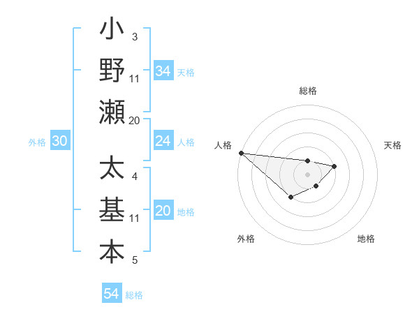 小野瀬 太基本さんの天格は34画の2点!