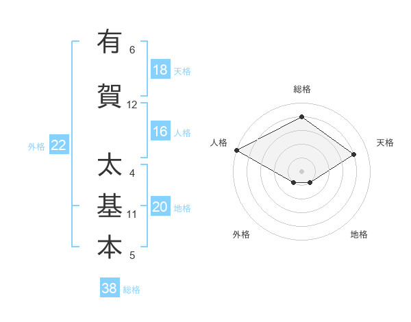 有賀 太基本さんを姓名の画数から五運を鑑定