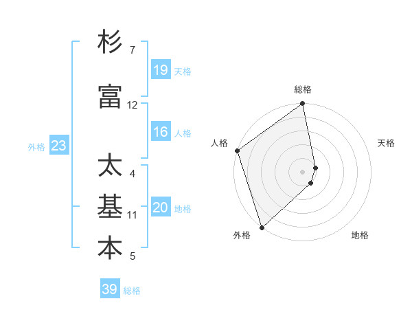 杉富 太基本さんを姓名の画数から五運を鑑定