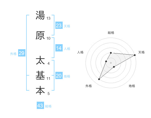 湯原 太基本さんを姓名の画数から五運を鑑定