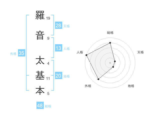 羅音 太基本さんの総格は48画の4点!