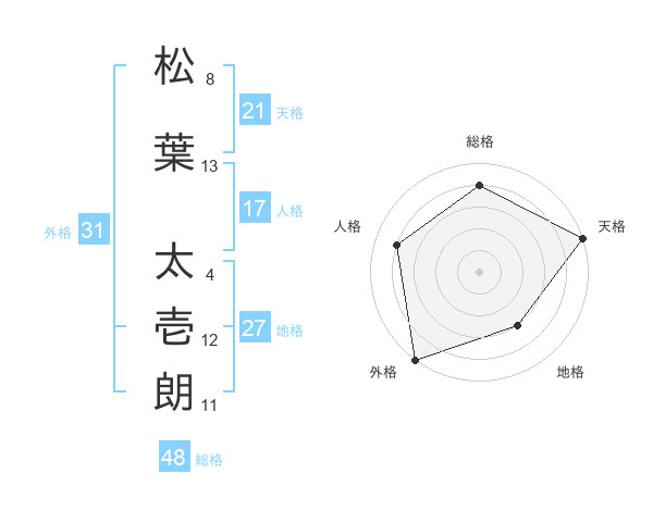 松葉 太壱朗さんの天格は21画の5点!
