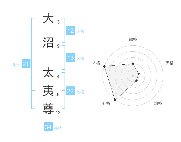 大沼 太夷尊さんの総格は34画の2点