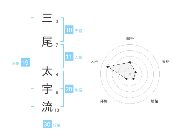 三尾 太宇流さんを姓名の画数から五運を鑑定