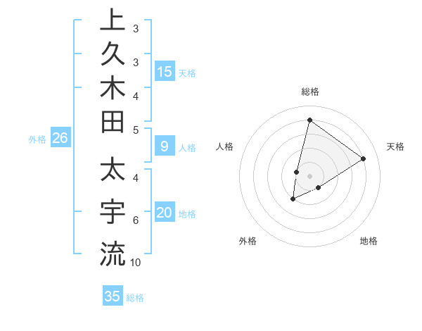 上久木田 太宇流さんを姓名の画数から五運を鑑定