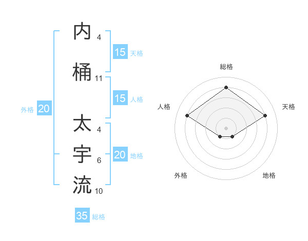 内桶 太宇流さんの総格は35画の4点!