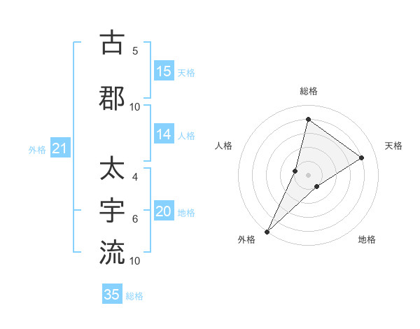 古郡 太宇流さんを姓名の画数から五運を鑑定