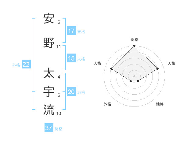 安野 太宇流さんの総格は37画の5点!
