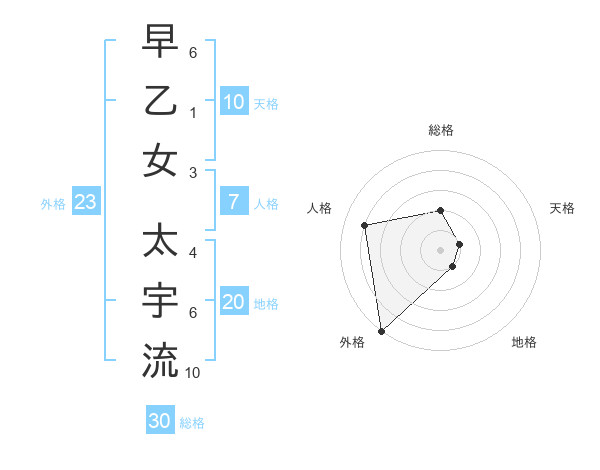 早乙女 太宇流さんを姓名の画数から五運を鑑定