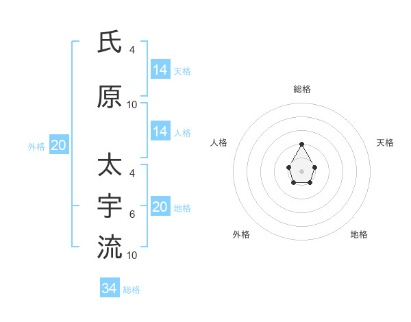 氏原 太宇流さんの総格は34画の2点!