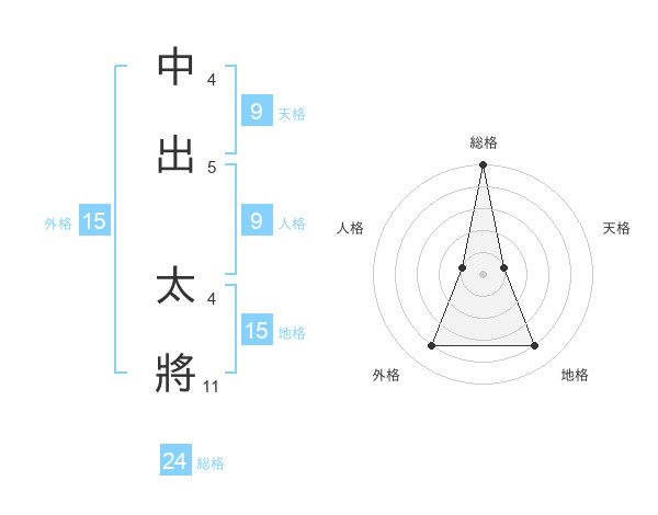 中出 太將さんの総格は24画の5点!