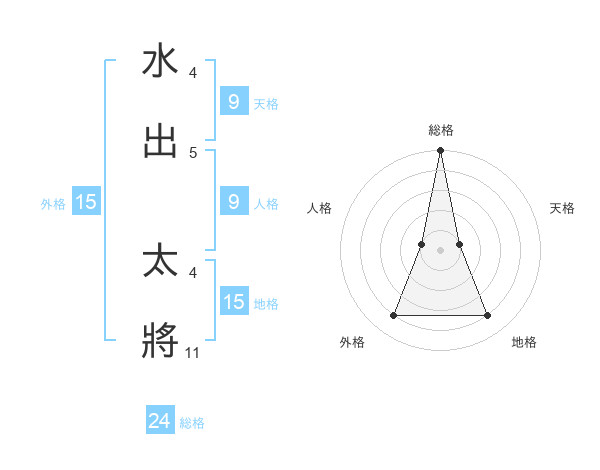 水出 太將さんの外格は15画の4点!