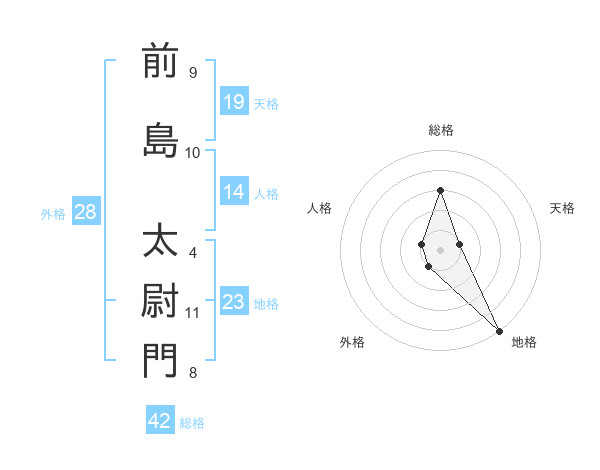 前島 太尉門さんの総格は42画の3点!