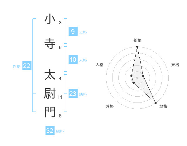 小寺 太尉門さんを姓名の画数から五運を鑑定