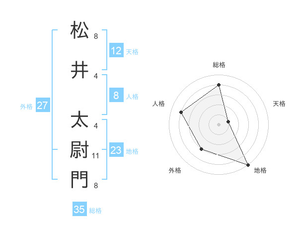 松井 太尉門さんを姓名の画数から五運を鑑定