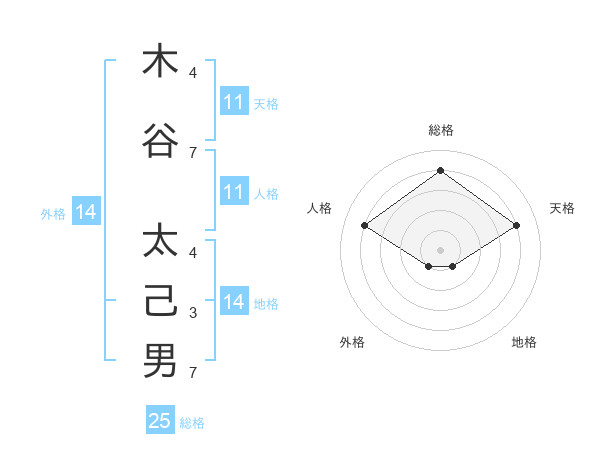 木谷 太己男さんを姓名の画数から五運を鑑定