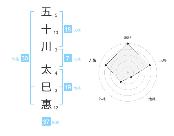 五十川 太巳惠さんを姓名の画数から五運を鑑定