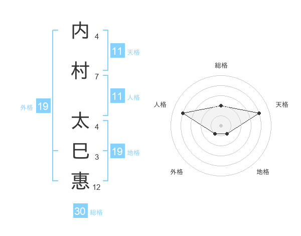 内村 太巳惠さんを姓名の画数から五運を鑑定