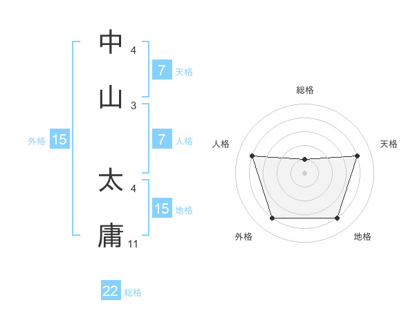 中山 太庸さんの総格は22画の1点!
