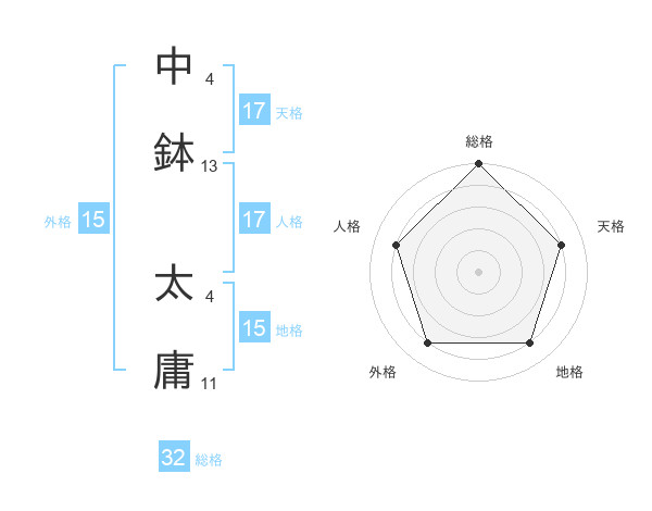 中鉢 太庸さんの天格は17画の4点!