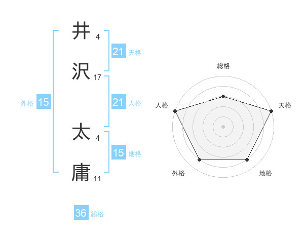 井沢 太庸さんの天格は21画の5点!