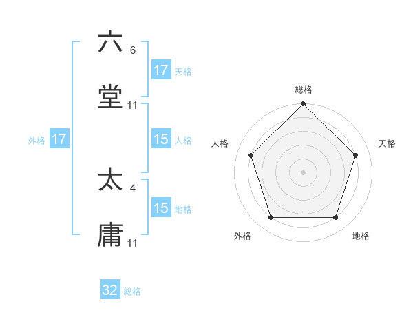 六堂 太庸さんの天格は17画の4点!