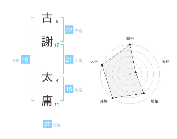 古謝 太庸さんを姓名の画数から五運を鑑定