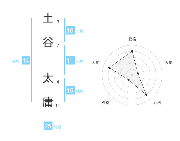 土谷 太庸さんの総格は25画の4点!