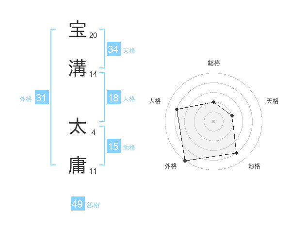 宝溝 太庸さんを姓名の画数から五運を鑑定