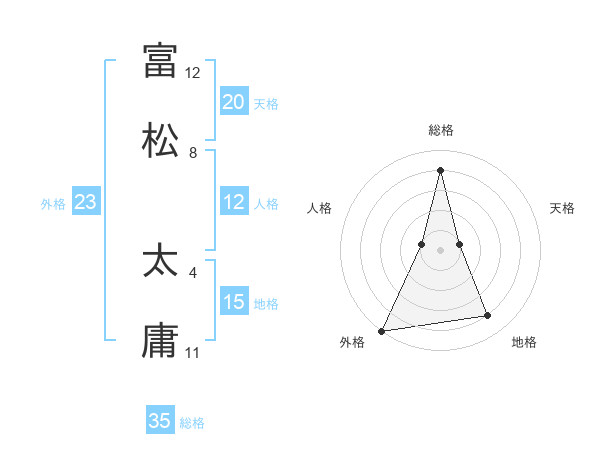 富松 太庸さんの総格は35画の4点!