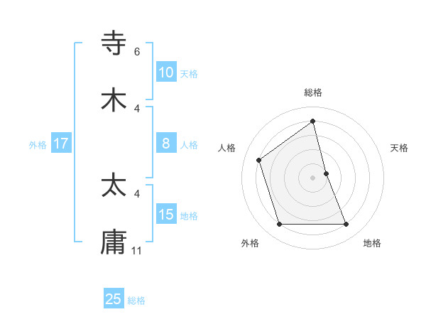 寺木 太庸さんの総格は25画の4点!