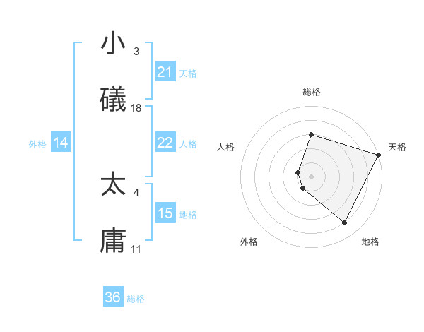 小礒 太庸さんの天格は21画の5点!